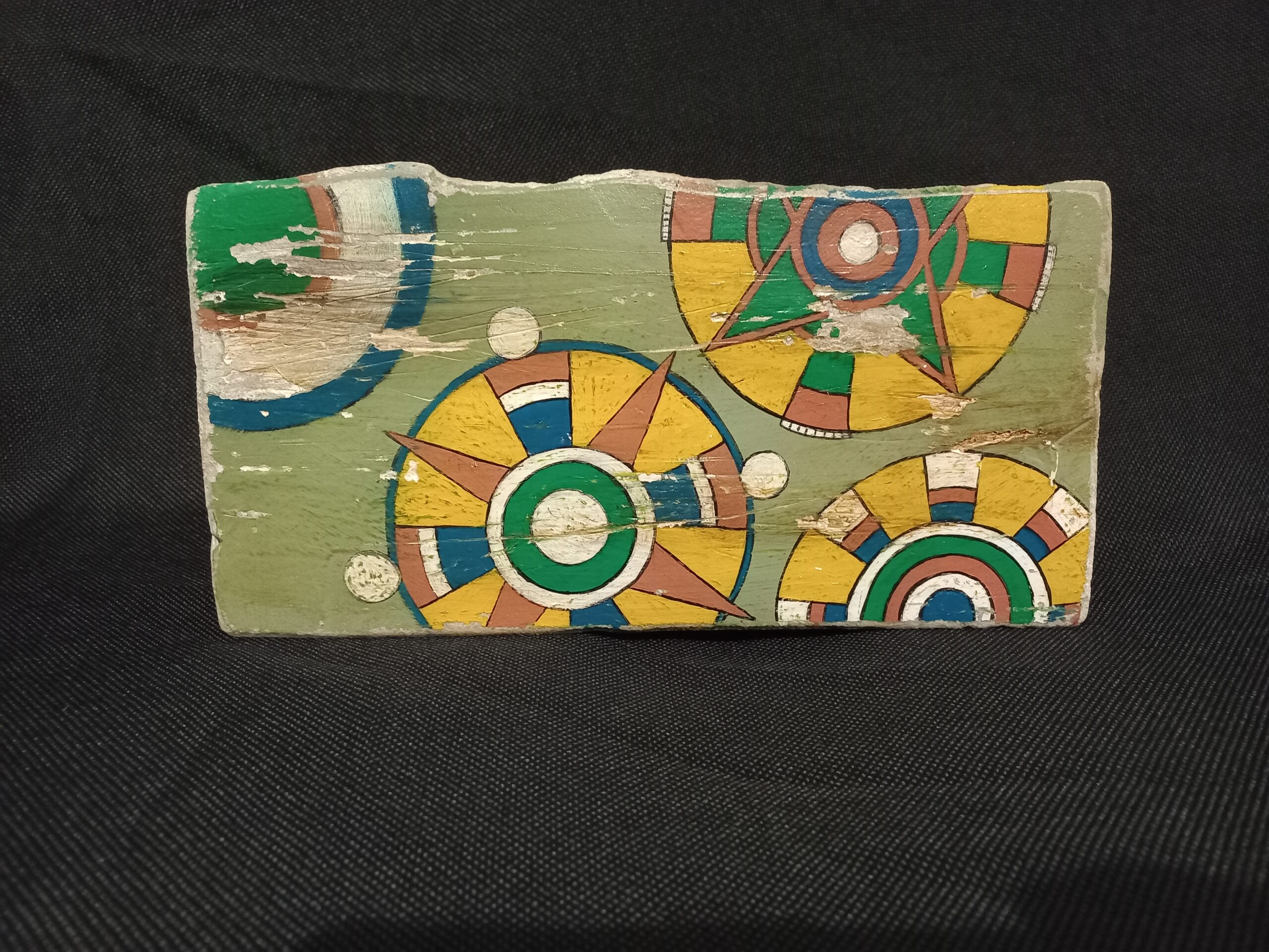 Sur un bloc de pierre, j’ai peint les motifs en leur donnant l’aspect du temps, les vieillissant comme un fragment d’histoire retrouvé.